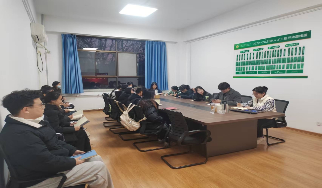 2025年12月10日下午18时,语言文化学院学生第二党支部于会议室召开支部党员大会。会议议程主要包括集中学习心得交流、发展对象接收为预备党员、预备党员转正以及主题分享四个环节。党支部全体党员及部分入党积极分子参加了本次会议。