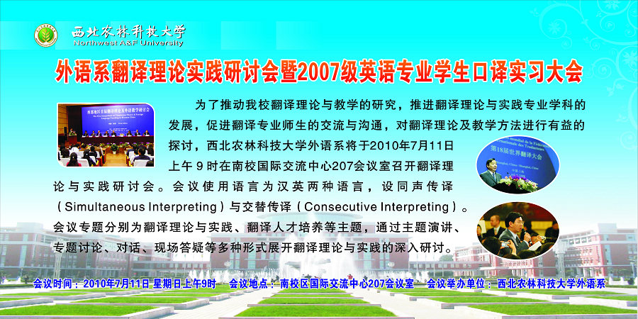 » 关于翻译理论实践研讨会暨2007级英语专业学生口译实习大会的通知