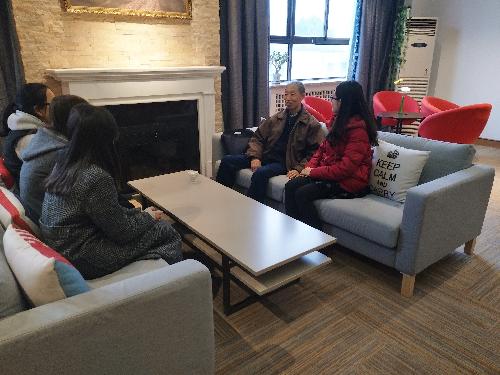 在黄教授幽默风趣的自我介绍后,座谈拉开了序幕。首先,黄教授就学生们的学业情况进行了询问,了解了学生们学习中所存在的困难和疑惑。接着,他就其产生原因做了系统的分析。黄教授认为,困难和疑惑出现的原因是多方面的,且主要是由环境适应能力、个人兴趣爱好、学习技巧方法和家庭因素等导致的。并向学生们提出转变学习观念、改变学习方法、提升核心竞争力等意见建议。最后,黄教授寄语学生们要留心生活中的英语文化,处处留心皆学问,并期望学生们在新的学期取得更大的进步。
