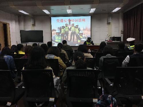 为进一步加强学生道路交通安全意识,保障学生校内外平安出行,3月31日晚,我系于7501报告厅举办了一场交通安全知识讲座,外语系辅导员刘方出席讲座,杨凌示范区公安局交巡警支队二大队城区中队四位警官给在场的大一、大二学生带来了一节生动的安全知识课堂。