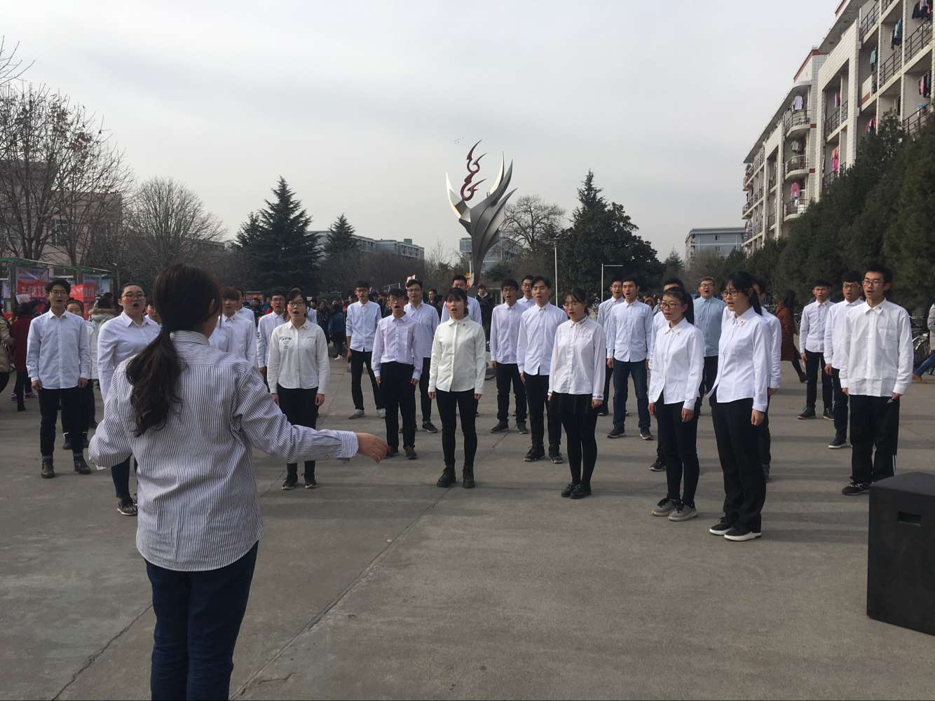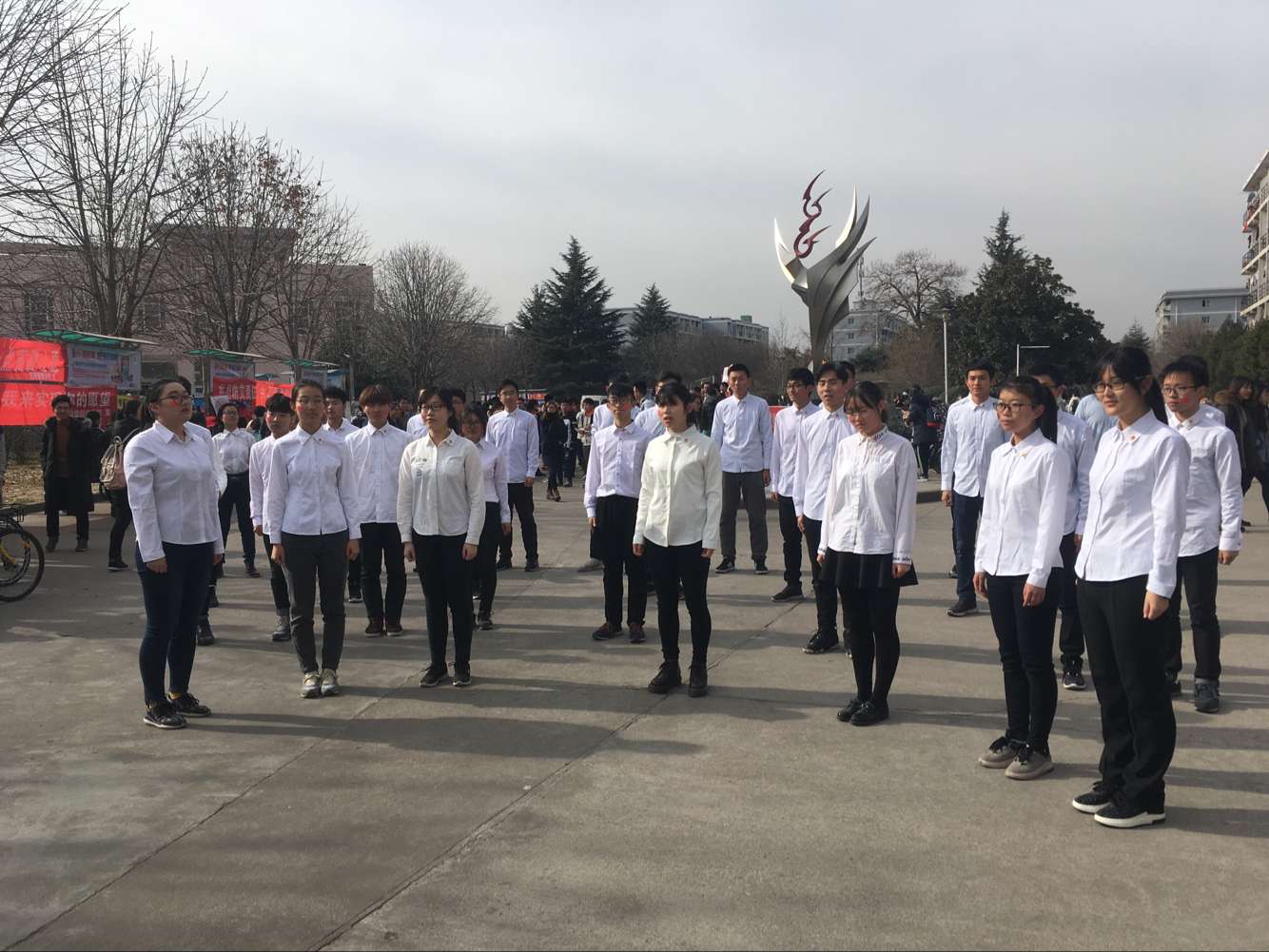 为纪念一二九学生爱国救亡运动,由西北农林科技大学外语系、人文学院、动科学院、信息工程学院四院联合举办的12.9唱红歌快闪活动于12月8日中午12点在西雕开展。