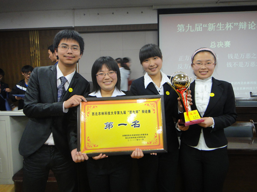 本场比赛辩题为“钱是万恶之源VS钱不是万恶之源”,正方为动科学院代表队,反方为外语系代表队。比赛过程精彩纷呈,双方立论简明扼要,攻辩据理辩争却不失礼数,自由辩论话锋明锐、衔接自然,总结陈词儒雅大方,高度全新。整场比赛我系辩手配合默契,几度将比赛推向高潮,赢得了全场观众的热烈掌声。最终我系辩论队以优异的表现摘得第九届“新生杯”桂冠,捧回“团体第一名”的奖杯,我系辩手周咏珺荣获 “最佳辩手”荣誉称号。
