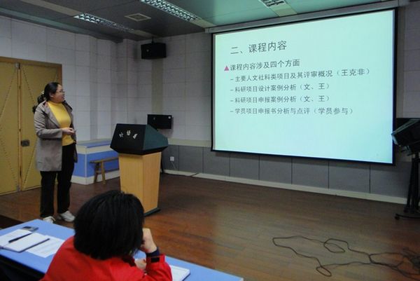 报告会上,李丽霞教授在介绍“2012年高等学校外语学科中青年骨干教师高级研修班”(北京)情况的基础上,与大家共同分享了自己在研修班学习的心得体会与收获成果。她详细讲解了科研项目申报的流程、申报要点、项目申报书设计、与学术论文的区别、近年来国家科研项目评审获批情况等内容,并对每项内容提出了总结性建议。同时,李教授指出,科研项目申报是一个锻炼和学习的机会,不是最终目的,中间是一个扎扎实实做研究的过程,需要不懈的精神,从项目选题到最后填写申报书,需要在多次机会中抓住学习的本质,只有扎实的前期准备,才有后期收获的可能。此外,李教授还特别介绍了两位主讲人文秋芳教授和王克非教授先进的教学方法和独特的课堂感染力,号召我系教师向他们学习。