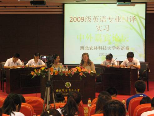 2012年6月26-27日,2009级英语专业学生口译实习之中外嘉宾论坛分别在南校区国际交流中心208,207会议室举行。