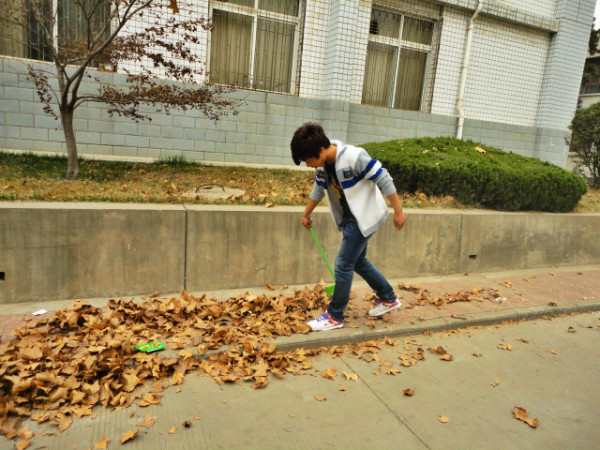 2013年3月9日下午,我系阳光团工委在外语系教学楼外开展“学雷锋撒阳光 展青春 建新功”义务清扫活动。