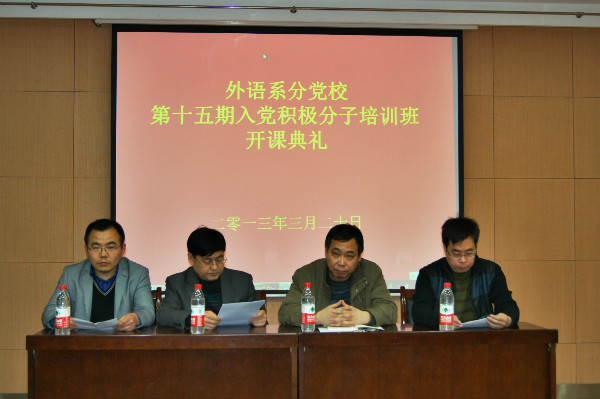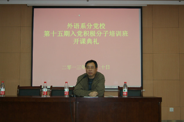 3月20日下午4:30,我系分党校第十五期入党积极分子培训班开班典礼在北绣南报告厅举行。外语系党委书记、分党校校长李安民研究员,思政部主任方建斌教授,系党委副书记、分党校副校长王小平副研究员及辅导员王琼老师、曹姬倩蕊老师出席了本次典礼,培训班全体学员参加了开班典礼。开班典礼由辅导员刘刚进老师主持。