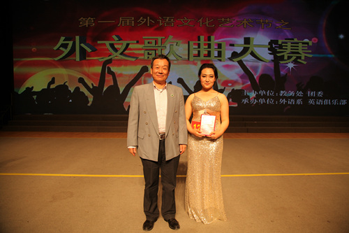 5月18日晚,由教务处、团委主办,外语系、英语俱乐部承办的“第一届外语文化艺术节开幕式暨外文歌曲大赛决赛”在北绣山活动中心隆重举行。我校常务副校长赵忠、外语系主任杨宏、外语系党委书记李安民、校团委书记曹军会、国际交流处副处长于瑛、教务处副处长黄德宝、学生处副处长张海成、就业中心副主任常振山、校团委副书记石颖贤、外语系副主任田志强、外语系副主任殷延军、外语系党委副书记王小平以及来自内布拉斯加林肯大学的12名留学生和我校1000余名学生参加了本次活动。