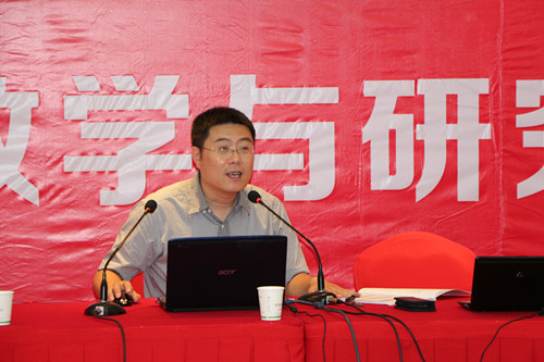 6月28日下午,研修班举行了开班典礼举行了闭幕式。田志强副主任对研修班全体学员在研修期间的认真给与了充分肯定。他希望各位老师将研修中的精彩延续,将获得的智慧得以升华,并要求老师们继续努力,将我校的外语教学工作做得更好。李安民书记在闭幕式上做了讲话,李书记说,各位教师认真研修,积极钻研,体现了外语系教师追求卓越和学术进步的精神风貌,李书记还对特邀的刘润清教授和许宏晨副教授对研修班做出的贡献表示感谢。最后,外语教学与研究出版社编辑荀晓鸣女士详细介绍了外研社的课程和研修项目情况。