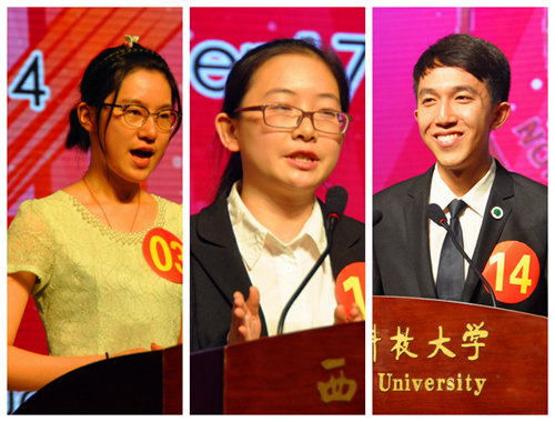 本次演讲比赛的主题是“Change the unchangeable”, 在激烈的预赛比赛中脱颖而出的来自不同校系的15名选手参加此次决赛。本次比赛包括定题演讲、即兴演讲、现场问答三个环节。定题演讲环节,参赛选手流利准确的发音,风趣幽默的言辞不时赢得了台下观众和专家评委的阵阵掌声。即兴演讲环节,选手们积极应变,展现了优秀的自我。评委提问环节轻松愉悦,评委与参赛选手进行面对面交流,是对选手英语水平的一个真实考验。评委们从英语口语发音、语言连贯性、创造能力、应变能力、英语思维逻辑能力、情感细腻度以及仪容仪表等对选手进行打分。经过激烈角逐,外语系符果以92.24的成绩荣获英专组特等奖,水建学院孔金鹏以91.06的优异成绩获得非英专组特等奖;外语系刘嘉怡获得英专组一等奖,梁紫晨、杨景雯获得非英专组一等奖;何杰、周天爱、史如冰三位同学获得非英专组二等奖,外语系颜欢获得英专组二等奖;陈正楠、童明、张春阳、左文莹、王晓琪、李元桢六位同学获得三等奖。