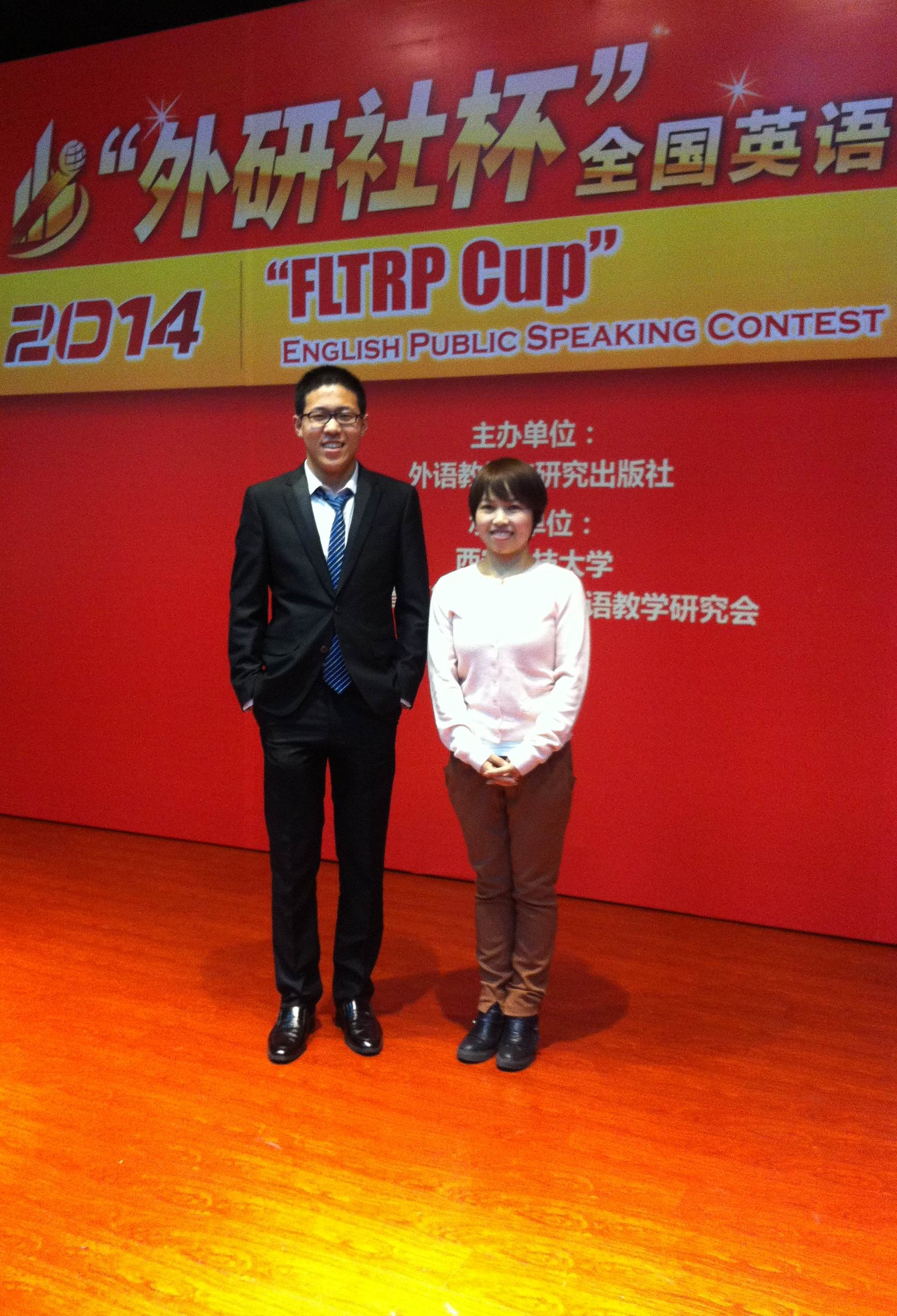 10月31日至11月1日,由外语教学与研究出版社主办,西安科技大学和陕西高等学校大学外语教学研究会承办的2014年“外研社杯”全国大学生英语演讲比赛陕西赛区决赛在西安科技大学雁塔校区举行。来自全省44所高校的选手参加了本次比赛。经过选拔,我系英语专业124班符果同学代表我校参加了本次比赛,我系陈海英老师指导并带队参赛。