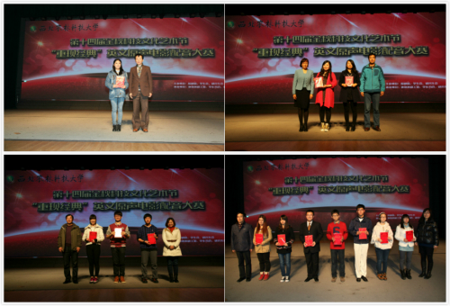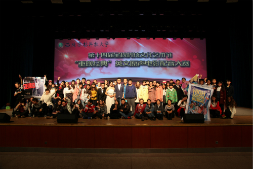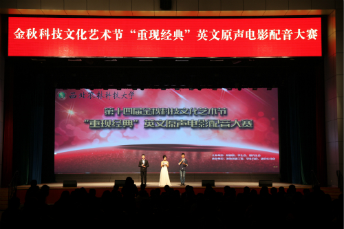 11月14日晚19:30,由校团委主办、外语系承办的第十四届金秋科技文化艺术节之“重现经典”英文原声电影配音大赛决赛于北绣山活动中心举办。校长外事秘书董会庆教授,国际交流处副处长于瑛副教授,外语系副主任田志强副教授、殷延军副教授,外语系侯雅丽副教授担任了本次大赛的评委。外语系党委书记李安民、校团委副书记石颖贤、外语系党委副书记王小平出席了本次大赛。