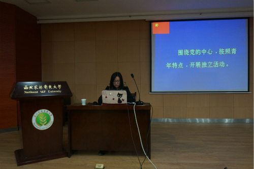 活动开始,在主持人的带领下,全体人员起立并奏唱了国歌。接着,由我系团工委副书记尹博彦宣读了《西北农林科技大学外语系第十一期团分校活动通知》。随后,外语系2014级学生代表发言。之后,全体同学奏唱共青团团歌。