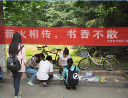 6月18日,我系在北校区西区雕塑前举办了主题为“薪火相传,书香不散”的赠书活动。