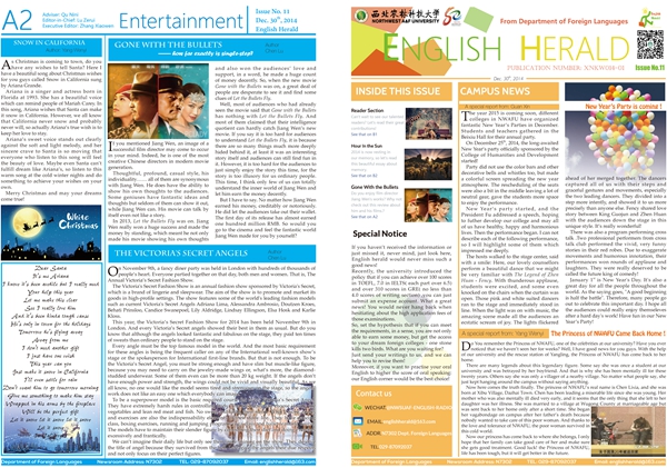 “学生就一件最近发生的事情进行评论投稿,刊登出来后,其他学生看到会觉得熟悉了解,而且会与自己的写作方法进行比较,会想我也可以不这样写,这在无形之中就提高了学生们的写作能力。”时任主编的风景园林艺术学院张潇文同学如是说。如今的英语学习导报一改往日旧貌,无论是编辑内容、栏目设置还是版面设计,都紧扣校园生活主题,切合学生的思维能力。