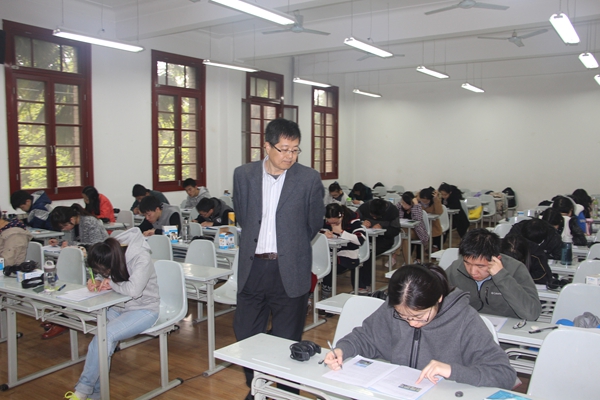 4月12日,2015年全国大学生英语竞赛初赛我校考点圆满结束,副校长罗军在比赛期间对考场进行巡查。