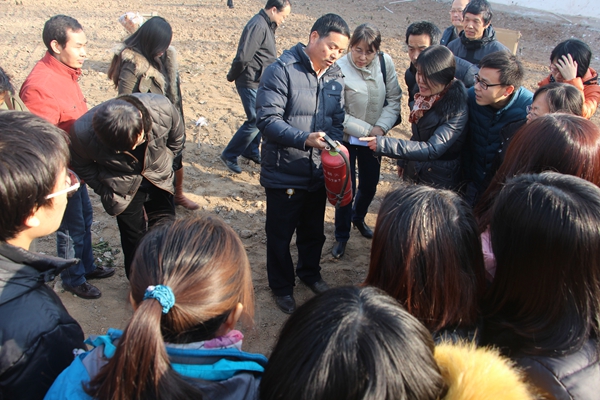 认真听取灭火器使用方法讲解