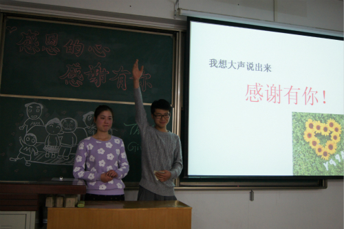 11月27日晚,我系在N8607教室成功举办了“感恩的心,感谢有你”感恩节主题教育活动。辅导员王琼、各班代理班主任及全体新生参加了本次活动。