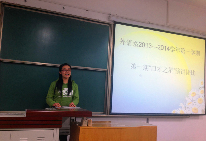 11月26日下午4:00,我系于N8208教室举办了2013-2014学年第一学期第一期口才之星评选大赛。外语系团工委书记曹姬倩蕊,系团工委、学生会主席团成员及2013级全体同学参加了本次活动。