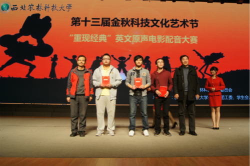 通过初赛和复赛的层层选拔,来自外语、动医、资环、农学、林学、动科、人文、经管、水建等多个院系的13支队伍从初赛80支队伍中脱颖而出,冲出复赛,挺进决赛。赛场上,选手们充分发挥了他们的创造才能和表演天赋,上演了一幕幕精彩而又别具特色的英文配音表演,博得了现场观众的热烈掌声和阵阵喝彩。由林学院傅华莉等同学带来的《精灵旅社》让观众在奇幻的精灵世界寻找到了别样生活的欢乐;由外语、动科、人文学院邢雨彤等同学联合出演的《卑鄙的我》让观众在语言的世界体会到了人性的温暖和温情;由外语系马思文等同学带来的《冰河世纪:猛犸圣诞节》更是配合钢琴、风琴、军鼓等多种乐器,在全消音的情况下为观众们带来一场视觉和听觉的圣诞狂欢……选手们的精彩表现、亲友团的欢呼打气以及本年度“校园十佳歌手”田依依的亲情献唱、曲艺团相声队成员的友情演绎,使得全场气氛十分活跃,欢呼不断。