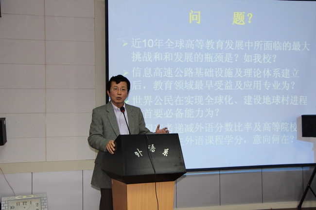 11月13日,高等教育国际化与外语教师专业发展专题报告会在北校区7号楼7501举行。报告会由外语系董会庆教授主讲。外语系教师及部分研究生参加了报告会。
