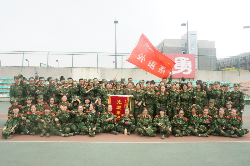 正在这里如火如荼地进行。迈着整齐的步伐,喊着嘹亮的口号,各院系方阵一一走过主席台,神采纷扬,步伐铿锵。最后,外语系2013级新生凭借优异的表现脱颖而出,为我系赢得了军事训练“先进单位”的荣誉称号,这是对为期半个月的军训成果的充分肯定,也是对我系大一新生坚持不懈、努力训练精神的高度赞扬。同学们纷纷表示,荣誉来之不易,他们一定会好好珍惜,在今后的学习生活中也一定会继续发扬吃苦耐劳、顽强拼搏的军训精神。