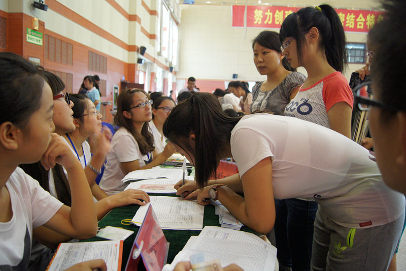 新生报到处包括资格审查、查验缴费单,注册登记,班级确认,分发一卡通、资料,入住宿舍等内容。为方便新生全面了解入学情况,我系特意将学科专业介绍、学生安全须知、辅导员及班主任电话、本科生新生报道流程等内容制作成宣传板,置于北绣山门口前。本次迎新工作我系学生会干部采用轮班制,岗位、责任到人,秩序有条不紊。迎新工作每天将从上午7点半持续到晚上11点。与往年不同的是:在本次迎新工作中,我系响应学校“独立报到圆梦想,自主自立新篇章”口号的号召,实行“家长在外等待,新生独立自主进厅报到注册”的新规定,锻炼了新生们的独立自主能力,赢得了家长的支持和赞许。
