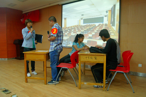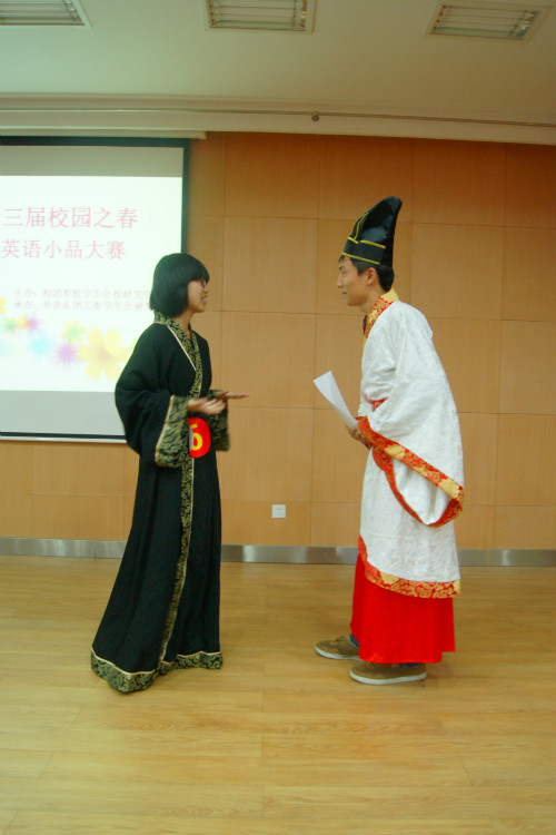 5月4日晚,由校团委主办,外语系团工委、学生会承办的第十四届“校园之春”文化艺术节之英语小品大赛决赛在北校绣山北报告厅成功举办。校就业指导中心副主任常振山、校团委副书记石颖贤、外语系副主任田志强、系党委副书记王小平出席了本次比赛。来自全校各学院的12支代表队进行了激烈角逐,比赛现场座无虚席,掌声不断。