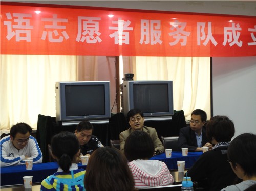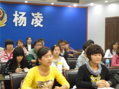 成立大会由示范区公安局出入境管理处冯碧涛处长主持,她首先介绍了到场领导和嘉宾,对到场大学生志愿者表示欢迎,并宣读了外事服务队工作制度。接着外语系李安民书记做了讲话,他要求我系志愿者要严格按照工作制度,积极抓住这次参与社会实践,提高思辨能力、综合能力的机会。他说:“大家要珍惜这次难得的锻炼机会,锻炼自己的语言应用能力,提高自己的综合素质,为示范区的发展做出贡献。同时也要遵守外事工作纪律,要树立集体意识,要为外语系,为西北农林科技大学争光。”随后,杨凌公安局政委姚源河也为我们介绍杨凌外籍人员的特点、分析了出入境管理的制度并对外事工作提出了几点建议。最后,由各位领导和嘉宾为首批17名志愿者发放了聘书,并由从事外事出入境管理的高川警官对志愿者进行业务培训。