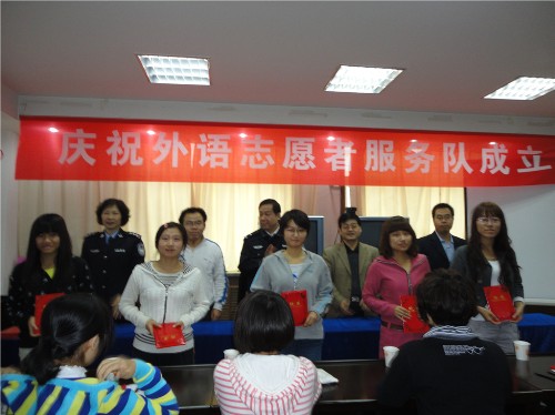 10月17日上午9:00,在杨凌示范区公安局六层会议室,我系与示范区公安局正式成立了“外语志愿者服务队”。出席成立大会的领导和嘉宾有杨凌示范区公安局政委姚源河、出入境管理处处长冯碧涛、外语系党委书记李安民、副书记王小平、英语专业教研室主任杨晓峰、辅导员刘刚进和刘少珊。参加成立大会的还有来自外语系的17名大学生自愿者。