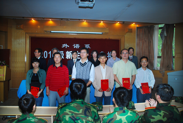 与会领导、教授 系主任窦琴教授致辞 系党委副书记王小平主持开学典礼 教师代表陈音稳老师发言 在校生代表葛亮同学发言 新生代表杨畅同学发言 为2010级新生班主任颁发聘书 开学典礼现场