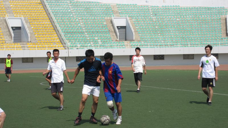 为了加深毕业生与母校的感情,进一步做好毕业生离校的欢送工作。2010年6月22日上午,外语系毕业教育系列活动之“欢送毕业生——师生足球友谊赛”在北校区足球场举行。