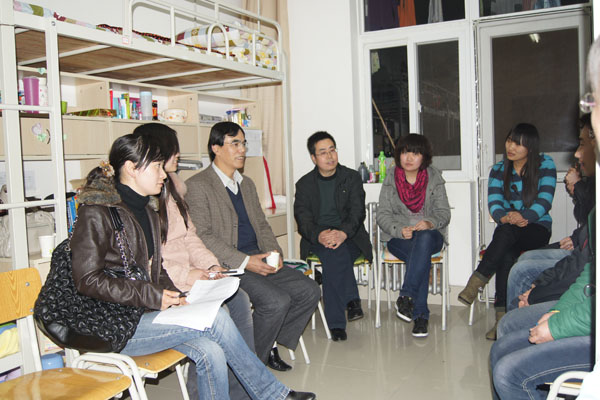 今天是我校学生返校报到的最后一天,恰逢我国农历的正月十五—元宵佳节。突然的降温和离家让刚刚归来的同学们感到无所适从。龙清林书记一行的到来让同学们感受到如风雨后阳光般的温暖。大家纷纷拿出从家乡带来的特色食品请他品尝。龙书记一行每到一处都细细的询问同学们的假期生活过的如何,有何收获、返校路途是否顺利等。从15#学生公寓到10#学生公寓龙清林书记对学生宿舍一 一走访,并不断嘱咐随行的辅导员作好学生返校后的学习生活安排。王小平副书记为同学们带来了元宵佳节的祝福并就宿舍存在的安全隐患提出了注意安全防火防盗的建议。对即将开始的新学期他说“明天大家就要迎来新学期的第一课了,大家一定要端正思想,尽快的投入到紧张的学习当中去”。
