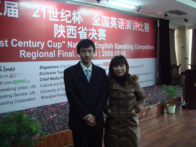 2009月16世纪杯”全国英语演讲比赛陕西省决赛在西安交通大学南洋大酒店隆重举行。我校英语专业07班葛亮同学在比赛中表现优秀,荣获陕西省赛区特等奖。