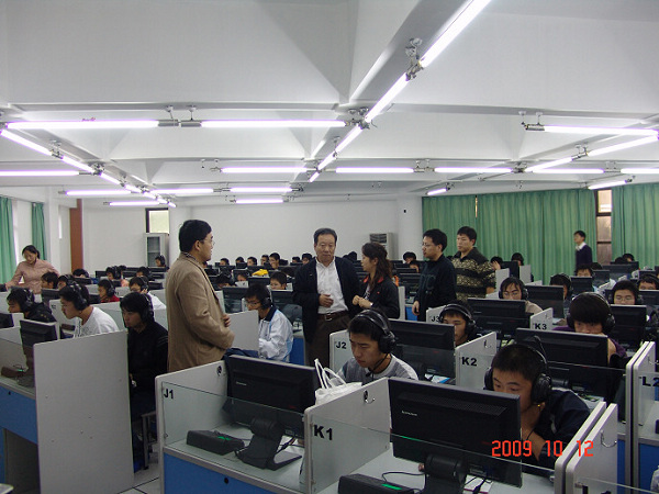 10月12日,赵忠常务副校长在教务处黄德宝副处长等人陪同下到外语系检查网络教学运行情况。外语系领导班子、语言教学实验中心相关人员参加检查。