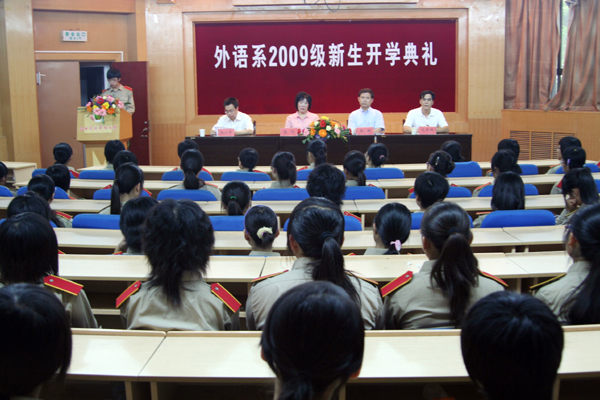 又是一个丹桂飘香的秋天,又是一个满载收获的季节,新的一年,新的起点。9月2日下午15:00,外语系2009级新生开学典礼在七号楼二层报告厅隆重举行。西北农林科技大学副校长侯曦、外语系党委书记龙清林、系主任窦琴、副书记王小平、各教研室负责人、教师代表、辅导员、2009级新生班主任、军训教官及170名新生参加了开学典礼。典礼由王小平副书记主持。