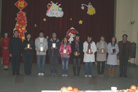 1月4日晚19:30,外语系在李秀厅举行2007-2008学年度学生先进集体、优秀个人表彰大会暨新年联欢晚会。副校长候曦教授、外语系党委书记龙清林、党委副书记王小平出席了本次晚会,辅导员、班主任、部分代课老师及全体学生参加了晚会。